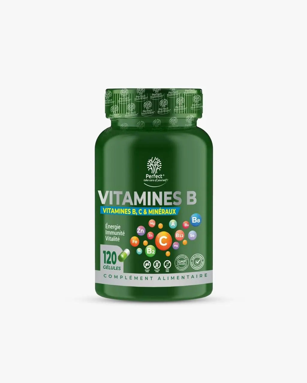 Le Complexe Vitamine B Perfect Nutrition offre une formulation complète réunissant les huit vitamines B essentielles dans un seul complément pratique. Cette synergie vitaminique puissante regroupe B1, B2, B3, B5, B6, B8, B9 et B12 en dosages optimaux pour répondre à vos besoins quotidiens.