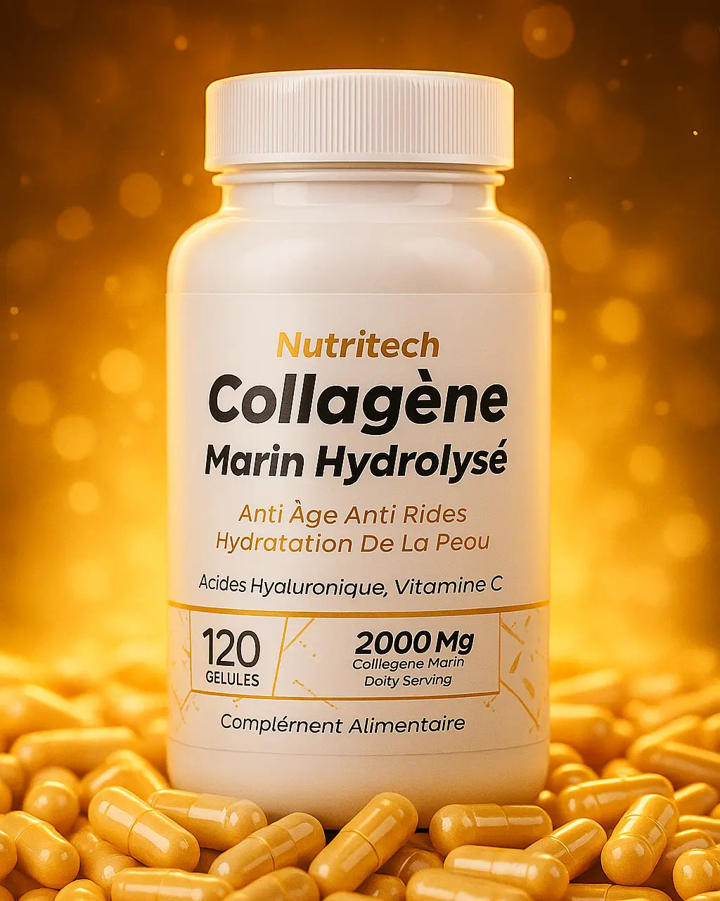 Format : 120 capsules par flacon Dosage : 2000 mg de collagène par portion