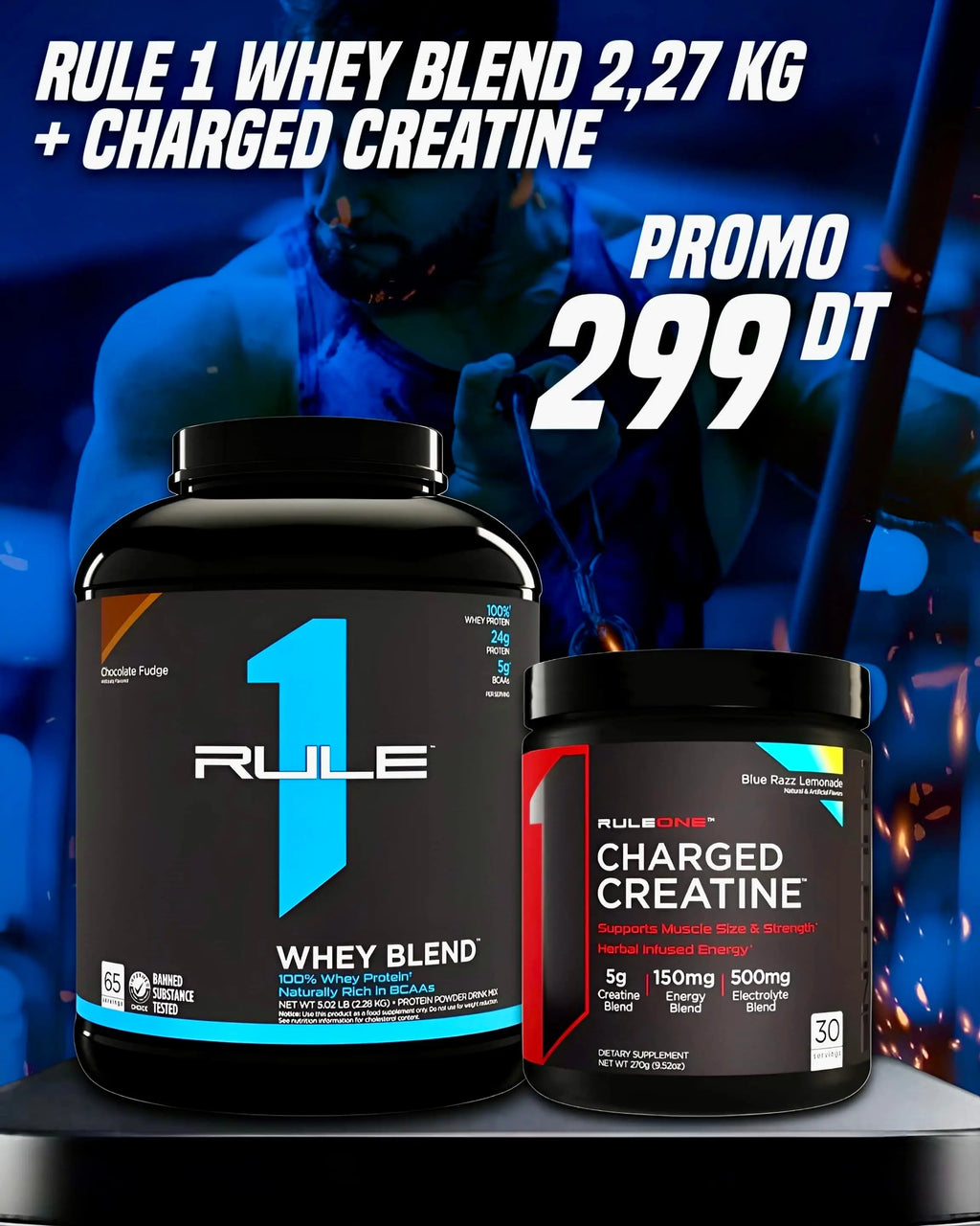 • Rule 1 Pack -Whey Blend 2,27 + Charged Creatine